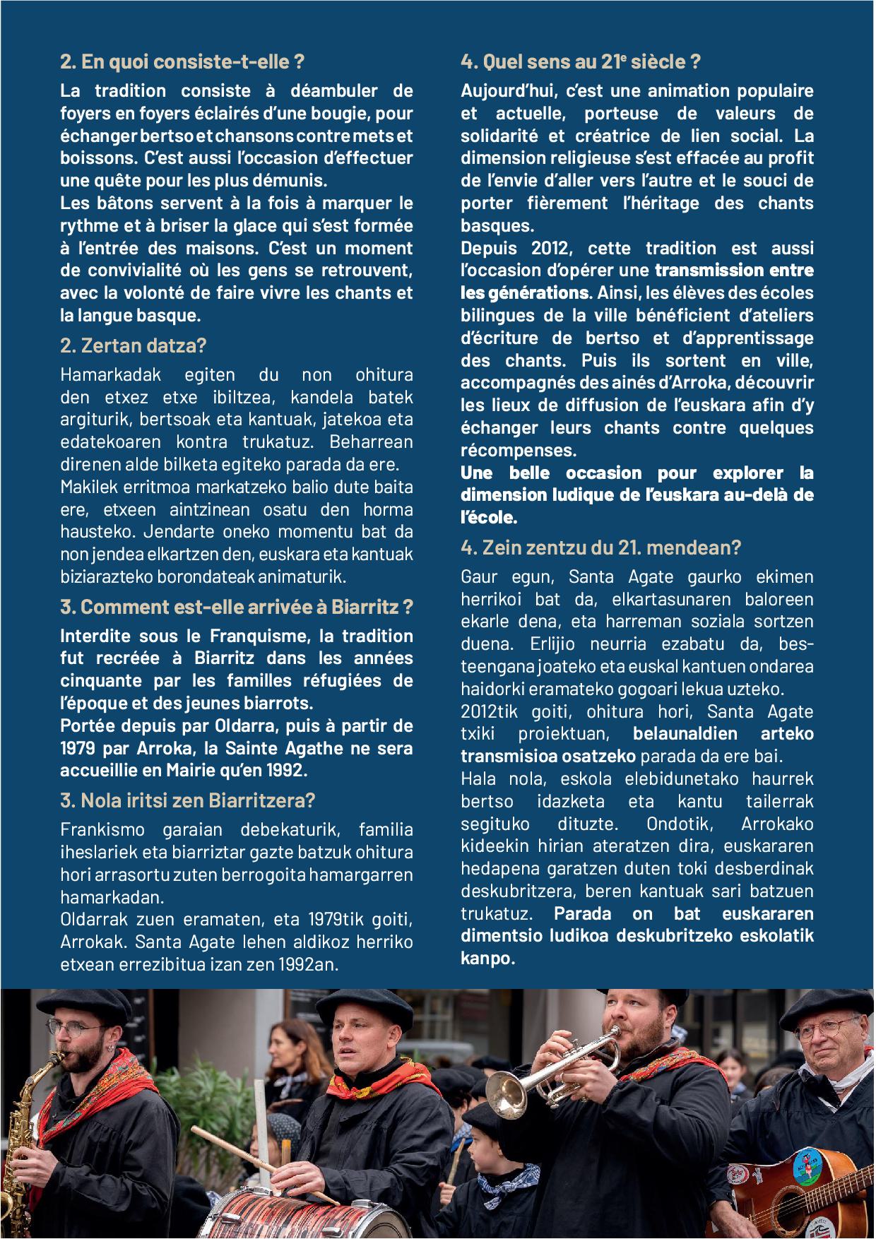 2012 urtetik, Santa Agate txiki antolatzen du Arrokak Biarritzeko eskoletako haurarekin. Depuis 2012, Arroka fête la Santa Agate txiki avec les enfants des écoles bilingues de Biarritz.