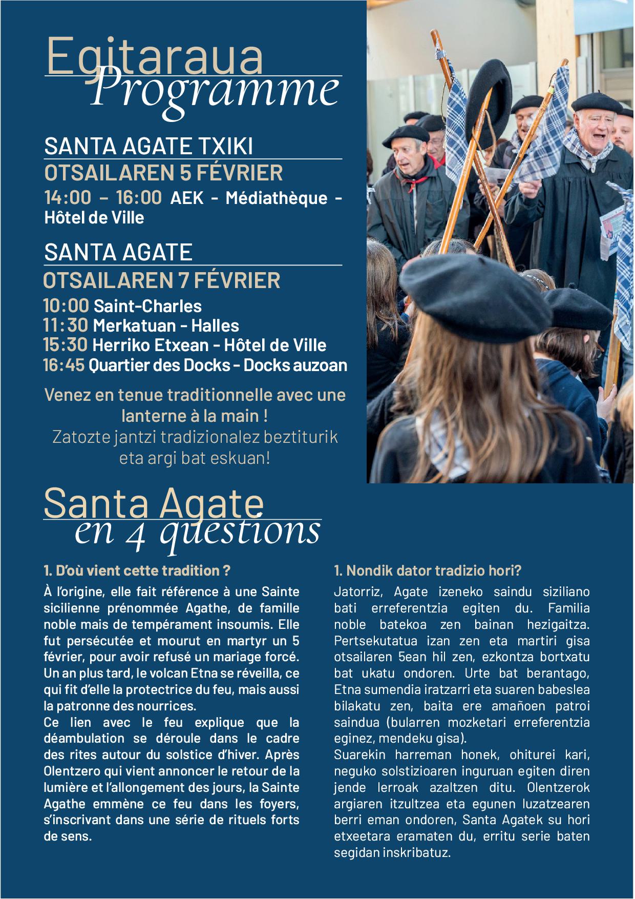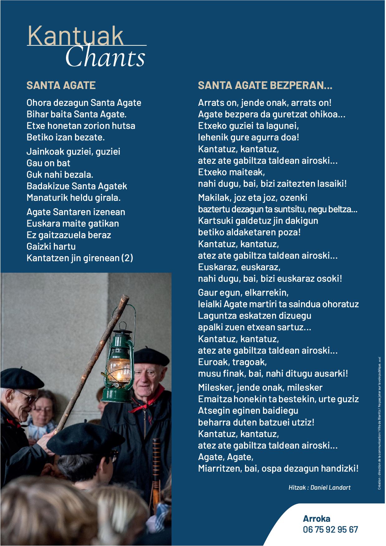 2012 urtetik, Santa Agate txiki antolatzen du Arrokak Biarritzeko eskoletako haurarekin. Depuis 2012, Arroka fête la Santa Agate txiki avec les enfants des écoles bilingues de Biarritz.
